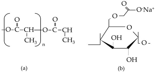 Formula structure of (a) poly(l-lactide acid) (PLLA) and (b) carboxymethyl starch (CMS).
