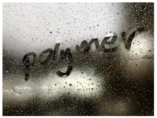 Breath figure (BF) is an example of the nature phenomenon of the formation of water droplets on surfaces (Figure 1). Since the first discovery in 1911 [1,2], for morphology observation, and further development by Francois et al. [3] in 1994 for materials science, the BF process has become one of the most promising fabrication methods in the production of porous polymeric films with ordered arrays. These pore structures, typically exhibiting a regular hexagonal arrangement, are usually regarded as honeycomb-like polymeric films. Unlike the traditional top-down techniques, such as lithography, etching, or the chemical vapor deposition method for regular patterns, the BF process provides a low cost, simple, and efficient route toward polymeric films with ordered arrays by the use of the self-assembly of water droplets on the surface.