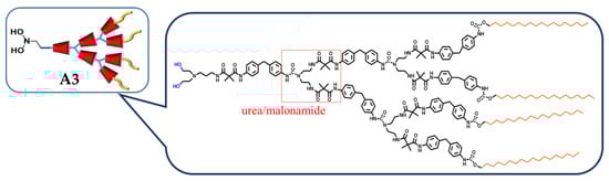 Schematic drawing of the dendritic poly(urea/malonamide) surfactant (A3). © Reproduced with permission from Royal Society of Chemistry (RSC).