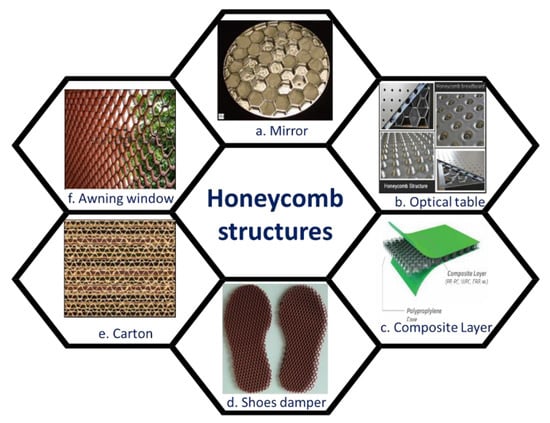 The feature of the honeycomb structure is a two- or three-dimensional regular arrangement on material surfaces. In the honeycomb scale, a building can be realized from the architecture field with meter-scale to biomaterials with nanoscale [15]. Some commercial products with honeycomb-like structures are used in our daily life (Figure 11). For example, the honeycomb matrix was a useful structure for damping, the steel is always built in the form of honeycomb under the optical table (Figure 11b). PU foam with honeycomb structure also plays a role of cushioning in our shoes (Figure 11d). Furthermore, the design of the honeycomb structure with rectangular or hexagonal cells are useful for the enhancement of heat transfer, while the triangular honeycomb structure possesses better mechanical properties [15]. Apart from the above mentioned, the applications of polymeric honeycomb-like films would be a totally new frontier.