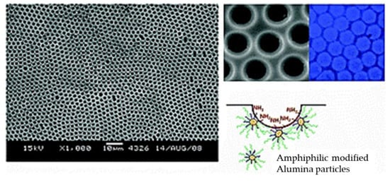 - Lakshmi, V.; Raju, A.; Resmi, V.G.; Pancrecious, J.K.; Rajan, T.P.D.; Pavithran, C. Amino-Functionalized Breath-Figure Cavities in Polystyrene-Alumina Hybrid Films: Effect of Particle Concentration and Dispersion. Phys. Chem. Chem. Phys. 2016, 18, 7367–7373. [Google Scholar] [CrossRef]