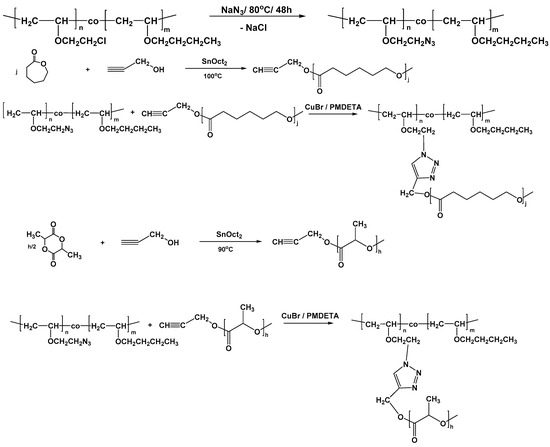 Synthesis of PBVE–g–PCL and PBVE–g–PLLA graft copolymers via the grafting “onto” methodology.