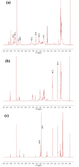 1H-NMR spectra of S1 (a), S2 (b) and S3 (c).