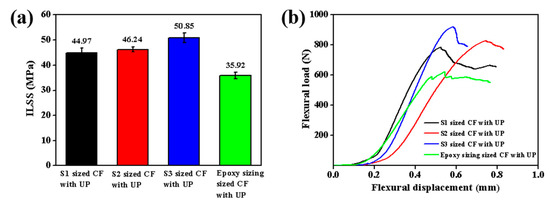 ILSS of the CF/UPR composites (a), and Load-displacement curves of CF/UPR composite (b).