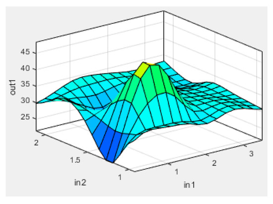 - If (input1 is in1mf2) and (input2 is in2mf1), then (output is out1mf4) (1).