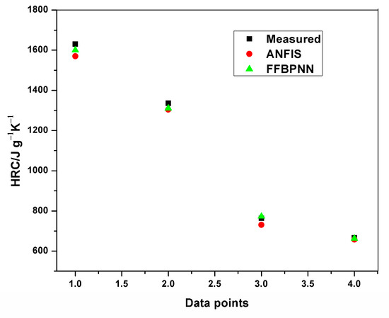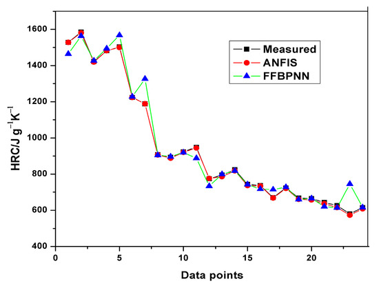 In the current study, an MCC experiment was conducted with extruded polystyrene samples at heating rates ranging from 0.1 to 3.5 K s−1. This research explored the applicability of ANFIS in the prediction of HRC and THR derived from the experiment. The degree of accuracy was determined by comparing the root mean squared error (RMSE) criterion, the coefficient of correlation and the coefficient of determination. A comparative analysis was carried out with multiple linear regression and the feed-forward back propagation neural network to show the efficacy, accuracy and superiority of ANFIS. The modeling results obtained from this research will help validate the robustness of ANFIS and its continual usage in future flammability assessments.