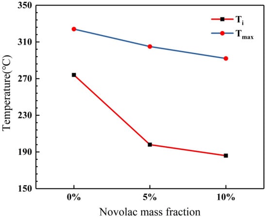 Influence of novolac mass percent on initial and maximum cure temperatures.