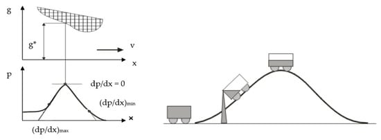 The thickness of the fluid film between the seal and the cylinder surface is determined by the evolution of the pressure gradient in the gap (dp/dx): a large gradient means a thin fluid film in the sealed area, while a small gradient determines a thicker fluid film. Figure 2 illustrates the evolution of the fluid film in the contact area of the seal and cylinder surface, known as the Prokop analogy [23]. It can be noticed that the gradient of the curve determines the volume of the leaked fluid. A greater gradient (dp/dx) causes a smaller quantity of dragged fluid.