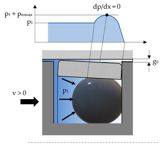 In Figure 3b the cylinder is fed a pressure p1, in which case, in the absence of a relative velocity v, the distribution of pressure on the sealed surface is given by Equation (4) [24]: