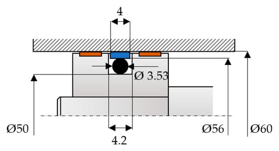 All notations used in Equation (3) refer to the O-ring: mr is Poisson’s ratio for the ring material (NBR), εr0—is its initial specific radial deformation, and H is the Shore A hardness of the material.