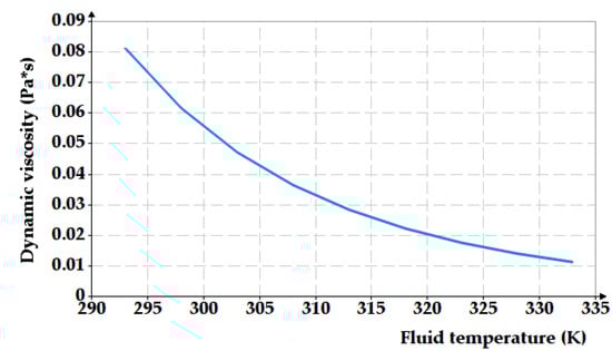 For oil temperatures between 20 °C and 60 °C (293 to 333 K), Figure 7 shows the variation of the dynamic viscosity versus temperature.