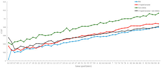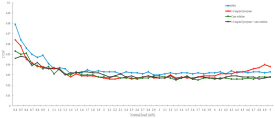 Figure 5a). The friction coefficient of the lysozyme was higher than the friction coefficient of γ-PGA-containing care solution and of the combination of lysozyme and γ-PGA-containing care solution (