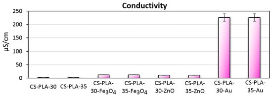 | CS-PLA-30-Fe3O4 | Fe3O4, 1.0 | 30 | |||