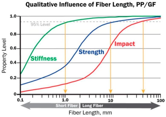Dependence of properties with fiber length in glass fiber reinforced polypropylene (PP) Reprinted with permission from [15].
