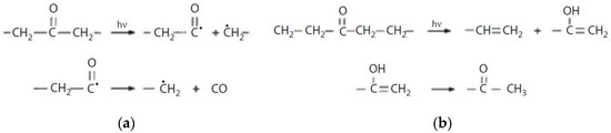 Norrish I (a) and Norrish II (b) reactions occurring in photodegradation of polyethylene Reprinted with permission from [113].