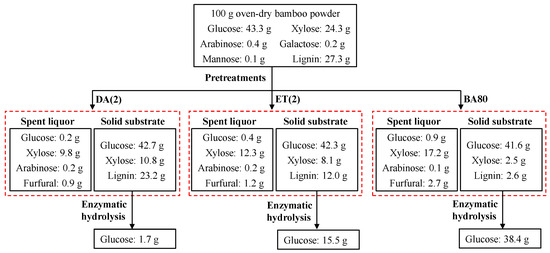 In order to examine the performance of BA pretreatment, ET and DA pretreatments were selected as the controls. The effects of these three pretreatments on the components removal and cellulose enzymatic conversion were preliminarily evaluated.