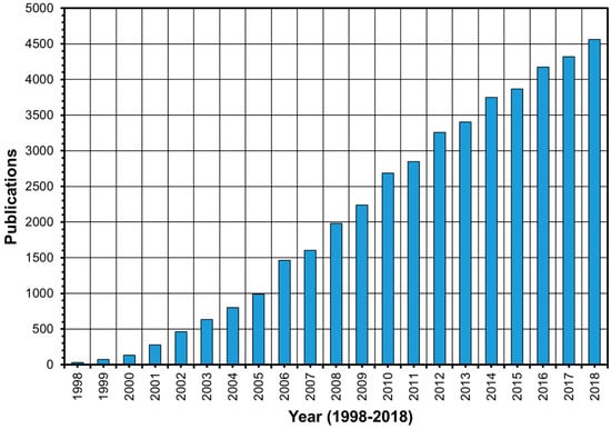 The number of publications in the last two decades showing the increasing interest in ionic liquids (Web of Science, November 2019, ionic liquids).