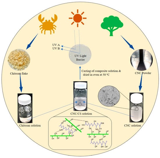 Schematic of preparing cellulose nanocrystal/chitosan (CNC/CS) nanocomposite films.