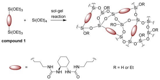 Tetraethyl orthosilicate—TEOS (>99%, Merck, Prague Czech Republic), ethanol—EtOH (99.9%, Penta, Prague, Czech Republic), hydrochloric acid (35%, Prague, Czech Republic), deionised water (Milli-Q, Prague, Czech Republic). Aluminium foil thickness 12 µm (Rotilabo, Karlsruhe, Germany). (1S,2S)-1,2-Bis{N’-[3-(triethoxysilyl)propyl]ureido}cyclohexane (compound 1) was prepared according to the literature [].