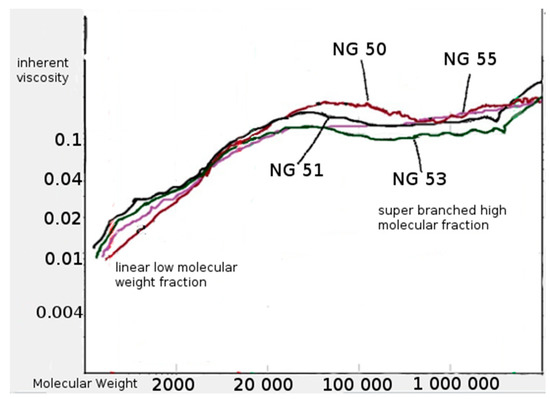 - Striegel, A.M. Viscometric Detection in Size-Exclusion Chromatography: Principles and Select Applications. Chromatographia 2016, 79, 945–960. [Google Scholar] [CrossRef]