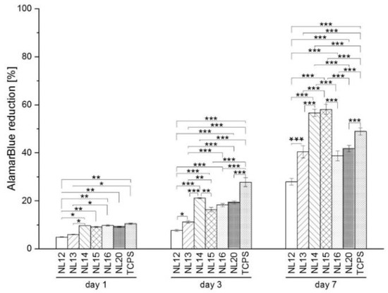 3.5. Cell Metabolic Activity, Viability and Morphology