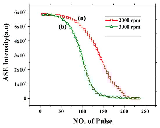 ASE stability of CO films with different thickness at different speed (a) 2000rpm and (b) 3000 rpm with 250 pulse and energy 2.5 mJ.