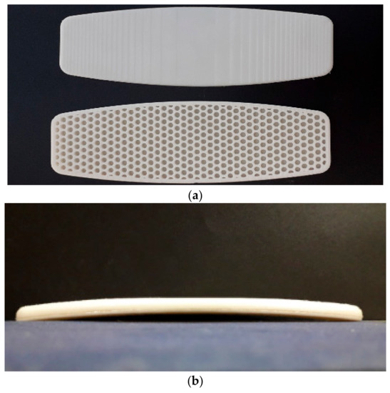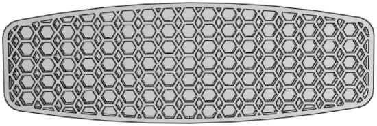 The HR structure, which is comprised of intermeshed rows of hexagonal and rhombic patterns periodically repeated across the core of the board, has been recently presented by Platec et al. [11] as a cellular structure fabricated by an FDM technology. Having been tested under a quasi-static loading (compression) condition, this structure demonstrated a compression resistance superior to that of a uniform honeycomb. Consequently, we were motivated to investigate the bending performance of this structure for our particular application. Figure 15 presents the designed bottom shell of the board with the HR structure applied to its core.