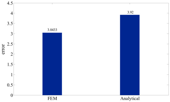 In this equation, Yi denotes the analytical or FEM results, and Yexp shows the experimental results. In Figure 14, the results of error function are plotted. The conclusion drawn from this plot is that the error between the experimental and FEM results was relatively low when compared to the error between experimental and analytical results; on the other hand, the finite element had less dispersion in comparison with experiment.