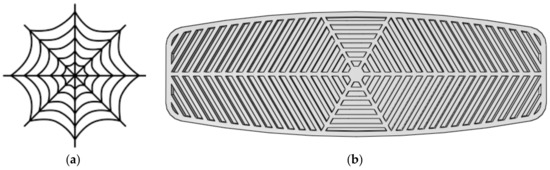 (a) A schematic of a spiderweb; (b) The spiderweb-inspired pattern applied to the core of the board.
