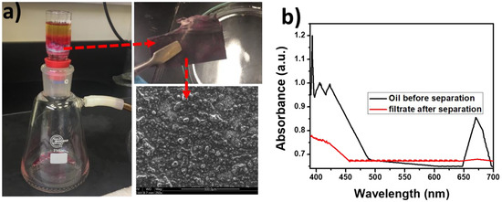 - Wang, B.; Li, J.; Wang, G.; Liang, W.; Zhang, Y.; Shi, L.; Guo, Z.; Liu, W. Methodology for robust superhydrophobic fabrics and sponges from in situ growth of transition metal/metal oxide nanocrystals with thiol modification and their applications in oil/water separation. ACS Appl. Mat. Interfaces 2013, 5, 1827–1839. [Google Scholar] [CrossRef] [PubMed]