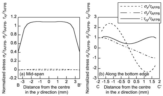 - From the FE analyses, the normal stress components were concentrated in a particular region. Therefore, there was a concern that the shear strength value would be estimated as low because the stress concentration enhanced the failure of the specimen. However, the effect of the stress concentration was less in the AFPB test than in the IPS test.