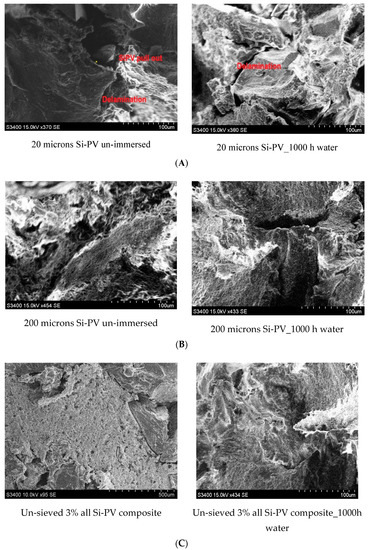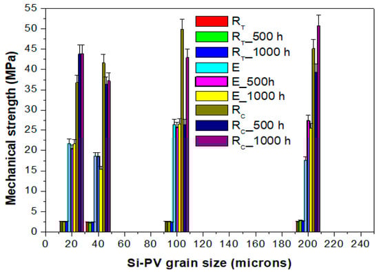 - with reference to the compressive strength, the composite with different Si-PV grain sizes exhibited higher compressive strength compared to the no Si-PV content composites, due to the higher inorganic filler stiffness, [21],
