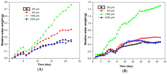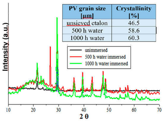 - the samples with the best compressive strength are of 100 and 200 μm Si-PV, 49.91 and 45.14 MPa, respectively, as it can be seen in Table 3. These values are 69% and 55% higher than that of the control sample (29.36 MPa), Table 1. This could be explained by the reduced macromolecules polymeric chains mobility in the near vicinity of the inorganic particulates of such size,