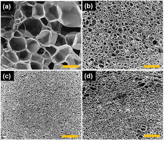 - Nyitray, A.M.; Williams, J.M. Microcellular Composite Foams. J. Cell. Plast. 1989, 25, 217–229. [Google Scholar] [CrossRef]