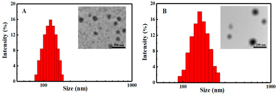 DLS and TEM of (A) blank and (B) DOX-loaded SCMs.