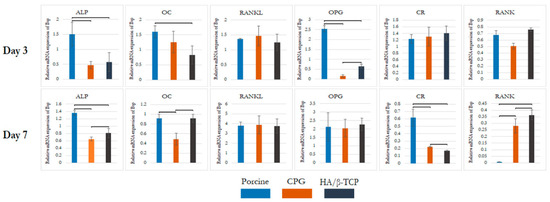 - Crespi, R.; Capparé, P.; Romanos, G.E.; Mariani, E.; Benasciutti, E.; Gherlone, E. Corticocancellous porcine bone in the healing of human extraction sockets: Combining histomorphometry with osteoblast gene expression profiles in vivo. Int. J. Oral Maxillofac. Implant. 2011, 26, 866–872. [Google Scholar]