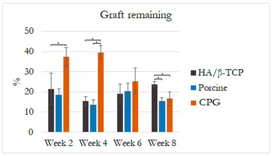 - Barone, A.; Toti, P.; Quaranta, A.; Alfonsi, F.; Cucchi, A.; Negri, B.; Di Felice, R.; Marchionni, S.; Calvo-Guirado, J.L.; Covani, U.; et al. Clinical and Histological changes after ridge preservation with two xenografts: Preliminary results from a multicentre randomized controlled clinical trial. J. Clin. Periodontol. 2017, 44, 204–214. [Google Scholar] [CrossRef]