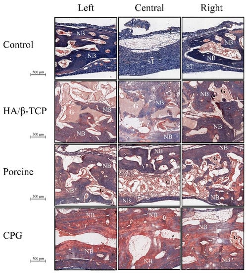 - Scarano, A.; Lorusso, F.; Ravera, L.; Mortellaro, C.; Piattelli, A. Bone regeneration in iliac crestal defects: An experimental study on sheep. BioMed Res. Int. 2016, 2016, 4086870. [Google Scholar] [CrossRef]