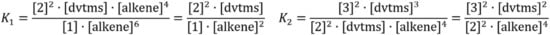 Thus, in a typical example, to the mixture obtained by the reaction between platinum hydrochloric acid and dvtms, a solution of alkyne in toluene is added, after which the mixture is stirred and the product is isolated by evaporation of the solvent, followed by washing in pentane. The resulting complexes have the formula Pt(alkyne)2.