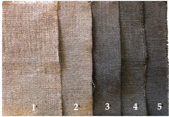 Flax fabrics were subjected to an alkaline pretreatment, to remove waxes and fats from its surface, to improve the adhesion between the polymers, the GNPs, and the fibers. To perform this treatment, an aqueous NaOH solution (1 M) was used. Subsequently, the fabric was placed in this solution for 60 min and stirred by orbital shaker. Finally, the fabrics were washed under running water to remove all residues and dried for 60 min at 80 °C.