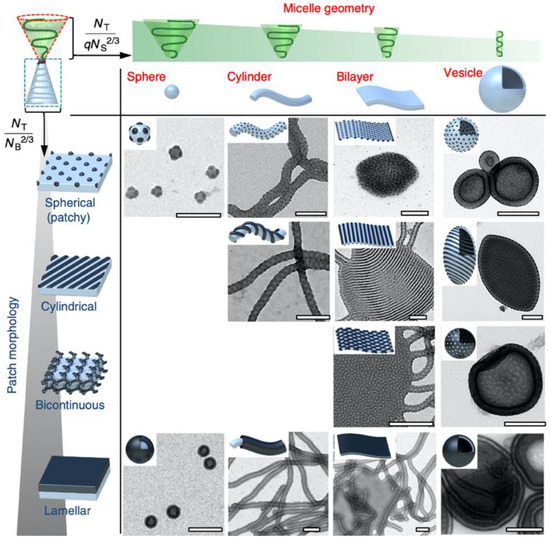 - Wong, C.K.; Qiang, X.; Müller, A.H.E.; Gröschel, A.H. Self-Assembly of block copolymers into internally ordered microparticles. Prog. Polym. Sci. 2020, 1, 101211. [Google Scholar] [CrossRef]