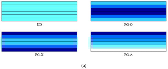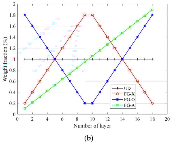 where ν is the Poisson ratio. The current work is also expanded for a different distribution of GNPs through the thickness direction (see in Figure 2a) as follows [57]
