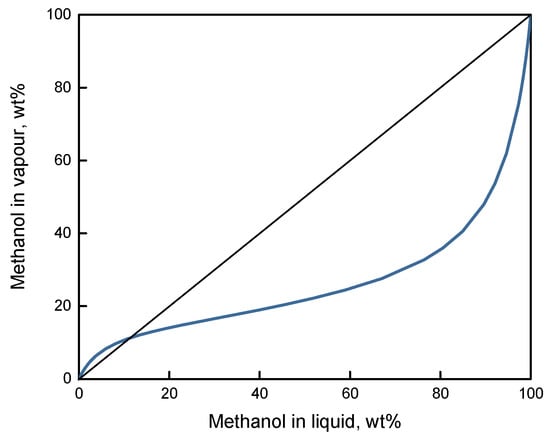 Vapor–liquid equilibrium curve for the MTBE-methanol system at 293.15 K [11].