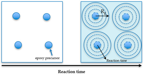 The radius of gyration (Rg) indicates a nanodomain dispersed in the epoxy matrix, as shown in Figure 4 and was evaluated by the Zimm plot (1/I vs q2). The Ornstein-Zernike model [24] was assumed for the q-dependence of the scattering intensity I(q), as in Equations (9) and (10):