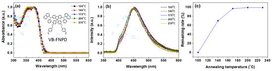 - Ma, B.; Lauterwasser, F.; Deng, L.; Zonte, C.S.; Kim, B.J.; Fréchet, J.M.J.; Borek, C.; Thompson, M.E. New Thermally cross-linkable polymer and its application as a hole-transporting layer for solution processed multilayer organic light emitting diodes. Chem. Mater. 2007, 19, 4827–4832. [Google Scholar] [CrossRef]