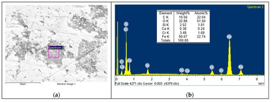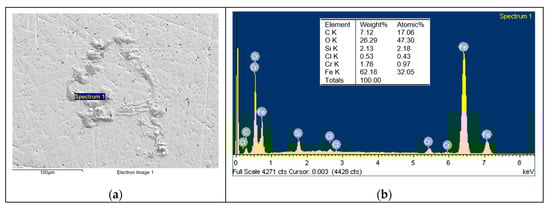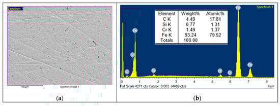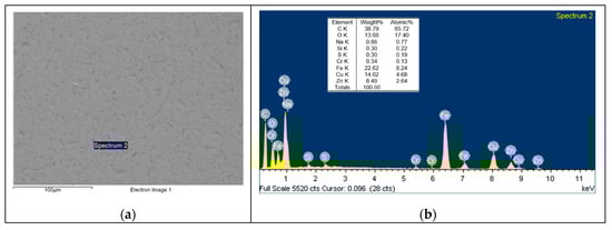 (a) SEM image and (b) EDS spectrum for non-tested discs.