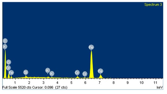 The microstructure of some of the samples was studied using High-Resolution FE-SEM Ultra Plus Zeiss equipment (Jena, Germany), a scanning electron microscope with field emission gun. The equipment has a complete detection system (EsB® detector with filtering grid (0–1500 V), a high efficiency in-lens SE detector, a chamber-mounted Everhart–Thornley detector, an Integrated AsB® detector EBS, SE). The EDS Oxford INCA Energy 350 system was used for microanalysis. Energy dispersive X-ray spectroscopy (EDS) allowed for elemental and chemical analysis of the samples.