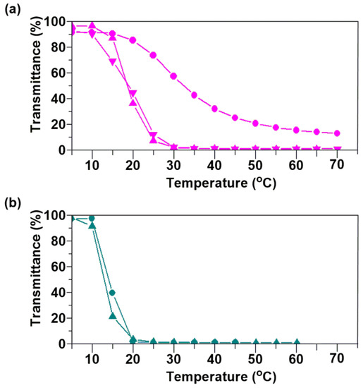 Hydroxy-containing vinyl polymers are well-known synthetic biocompatible materials useful in industrial, commercial, medical, and food applications [14,15,16]. Most hydroxy-containing copolymers obtained by copolymerization with hydrophobic units are lower critical solution temperature (LCST)-type thermoresponsive materials which are soluble in water, but become insoluble above a certain temperature (cloud point temperature; Tcp) upon heating. Such thermoresponsive polymers are of great interest for nanotechnology and biomedical applications [17,18,19,20]. Consequently, controlling the Tcp by designing the molecular structure of the hydroxy-containing amphiphilic polymer has become an important issue.