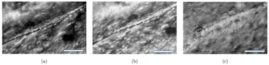 Self-healing process by microscope pictures. (a) Hydrogel was cut on the surface, the hydrogel surface appearance after (b) 15 min, (c) 80 min. Reproduced from S. Biswas et al. A Stimuli-Responsive Supramolecular Hydrogel for Controlled Release of Drug [103].