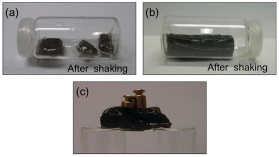 (a) Disruption of a hydrogel based on modified alginate with dopamine (DA) and (b) stable hydrogel based on catechol-polymerized alginate-DA. (c) Catechol-polymerizedalginate-DA hydrogel’s ability to bear a load 1.13 times greater than its own weight. Reprinted from J. Alegre-Requena et al. Regulatory parameters of self-healing alginate hydrogel networks prepared via mussel-inspired dynamic chemistry [104]. Published by The Royal Society of Chemistry, 2016.